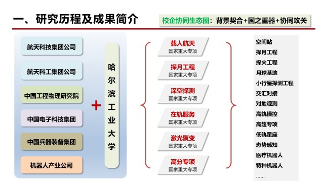 1)工程能力显著提升,论文选题80%以上源于载人航天、探月工程等170余项重大项目,助力研制出月球车、火星车、月面采样装置、空间机械臂等国之重器,学生科技攻关成果支撑获国家级科技奖11项、省部级科技奖90余项。