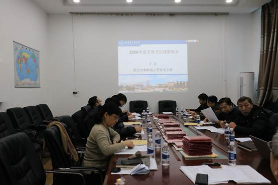 述职过程中,12个基层党支部书记从基层党支部重点任务完成情况、支部存在的问题及下一步工作计划进行了汇报,并重点介绍了党支部“三会一课”、主题党日等制度落实情况,特别是学习贯彻落实习近平总书记贺信精神和疫情防控情况。党委书记闫永达对各支部的工作进行了逐一点评,肯定了各支部一年来在党务工作方面取得的成绩,但也同时指出各单位存在的问题。并要求各单位:第一要深入学习贯彻党的十九届五中全会精神,并努力用全会精神指导工作实践;第二要深入学习习近平总书记的贺信精神,用贺信精神引领教学、科研工作,努力为学院发展和学校“双一流”建设担当作为;第三要以日常党建为抓手,做好党支部工作;第四要积极配合学校做好师生的疫情防控工作。
