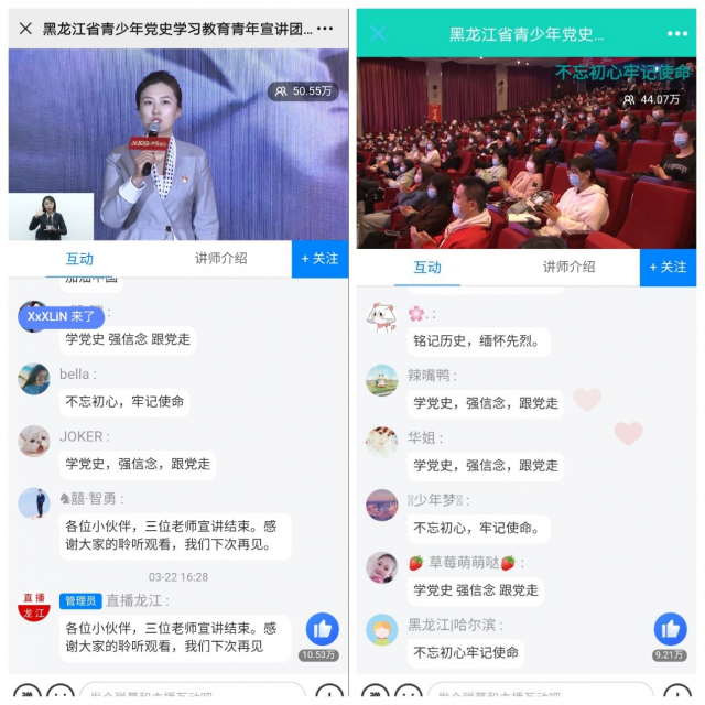 2021年3月22日下午三点,久久热 团委组织学院各团支部准时收看“黑龙江省青少年党史学习教育青年宣讲会”。各个团支部通过线下集体观看,线上观看并进行主题研讨等方式进行党史学习。在将近一个小时的直播中,团员们又一次回顾了中华民族那段艰辛的历史。一批批民族英雄现身在荧幕上,他们的英勇事迹再次回响于我们耳边。观看结束后,各位团员就宣讲会内容展开热烈讨论,深化学习成果,纷纷表示将会坚持党史学习,汲取优秀共产党员的精神力量。
