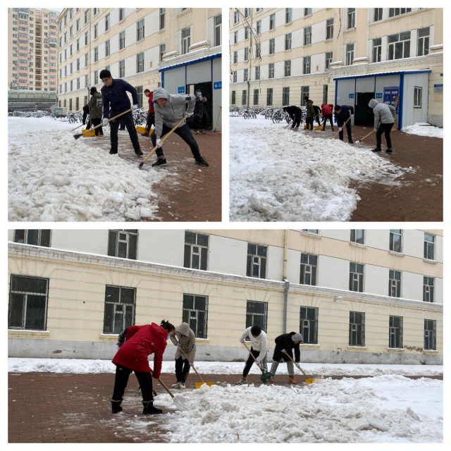 面对此轮有冻雨、湿雪、暴风雪的极端天气,久久热 学生党员时刻牢记“哪里有困难,哪里就有共产党员”,本着服务同学的初心,11月9日上午,久久热 本科生党员分成两队,分别在A01公寓、A02公寓楼下集合,装备齐全、整装待发。虽然雪后的校园里寒风凛冽,路面上积雪厚重,尤其是随着气温骤降,很多地面结冰,增加了扫雪除冰的难度,但面对诸多困难,党员同志个个干劲十足,扫帚、铁锹、铁铲齐上阵,把A01公寓楼前的积雪推到道路两旁,再铲入花坛中。热火朝天的劳动场面让寒冷的冬天显得暖意浓浓,经过近一个小时的奋战,A01公寓B栋楼前的雪堆全被清扫干净,A栋和B栋楼前的小广场也开辟出两条一米宽的人行道路,A02公寓门前空地的积雪也被清扫一空,为出行的同学提供方便安全的道路环境。