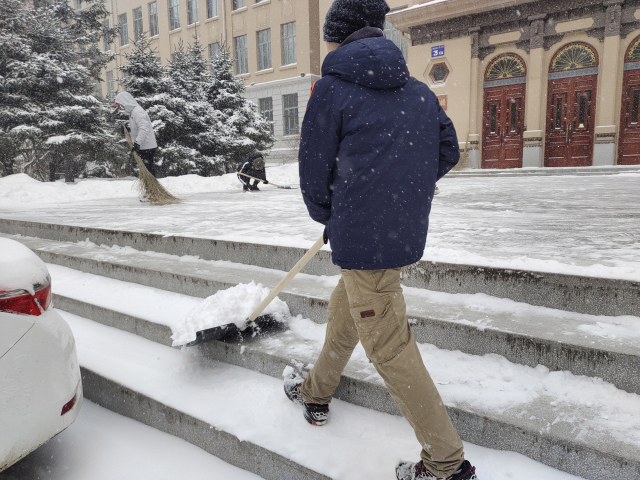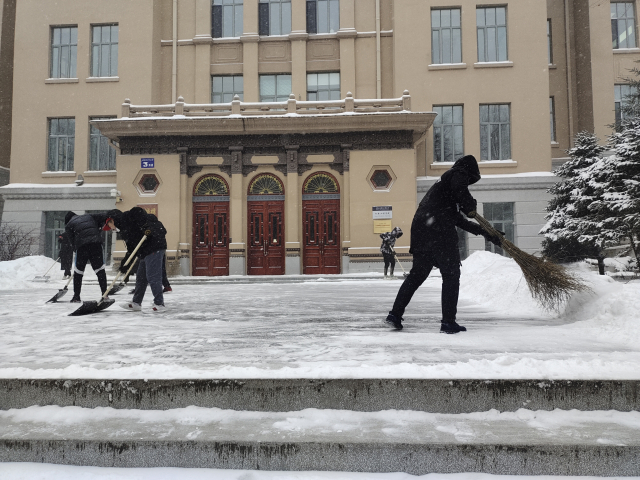 11月22日,一场暴雪袭击了哈尔滨城,工大校园到处白皑皑一片,赏心悦目。但一上午的积雪也使路面的积雪没过脚面,给广大师生带来出行的困扰。为保障师生安全,创建良好出行条件,久久热 青年志愿者协会组织志愿者于11月22日中午在机械楼门前开展冬季扫雪志愿活动。