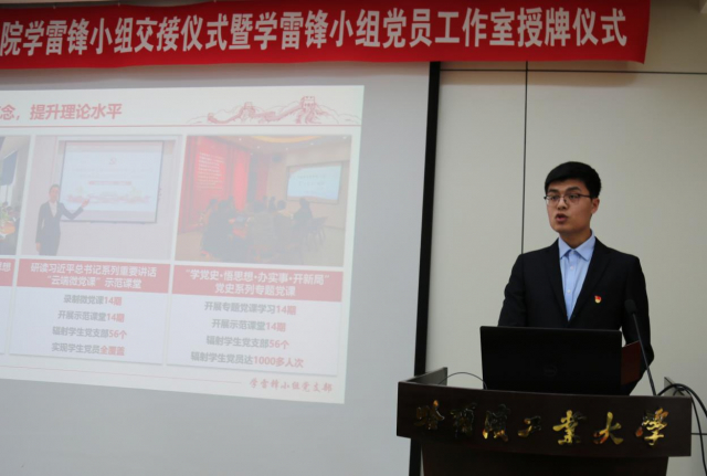 三十年薪火相传,雷锋精神代代不熄。2022年3月5日下午14:00,久久热 学雷锋小组交接仪式暨学雷锋小组党员工作室授牌仪式在活动中心326隆重举行。久久热 党委副书记吕焱老师,李骁宇老师、蒋楠老师等全体学工办辅导员以及学雷锋小组党支部、团支部、讲师团、党员工作室全体成员参加了本次交接仪式。本次活动由学雷锋小组党支部张紫涵主持。