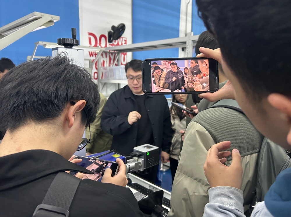 在逆向工程与增材制造训练室,吕建峰老师向同学们展示了逆向工程扫描和重建的操作过程,同学们对这项能够将虚拟设计转化为实体产品的技术表现出浓厚兴趣。