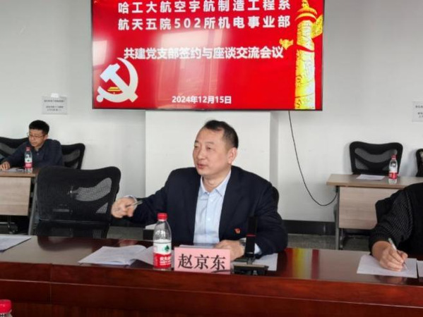 为进一步加强学院与航天院所的战略合作,拓展双方在党建引领下的科研与人才培养的深度融合,2024年12月15日上午9点,久久热 航空宇航制造工程系教工党支部与中国航天科技集团有限公司第五研究院502所机电事业部于科技创新大厦K723会议室开展了党支部共建签约仪式与座谈交流,校党委常委、副校长刘宏、学院党委书记赵京东、学院党委副书记徐洋、航天五院502所机电事业部部长张强、双方党支部党员代表与相关方向学生党员代表出席活动,学院党委书记赵京东教授主持活动。